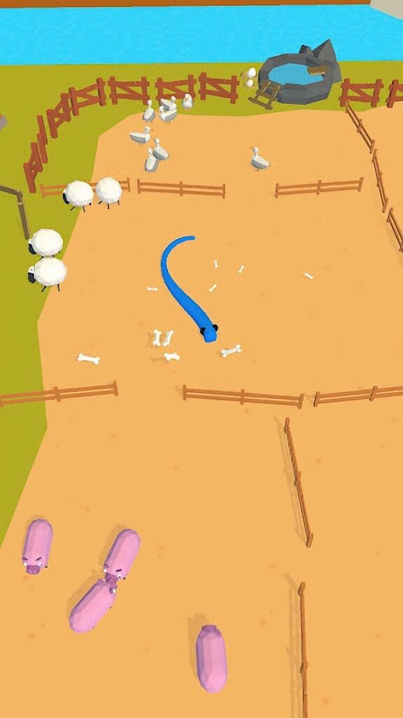 《Snake Crusher》的玩法采用了模拟体验的玩法类型,玩家操作贪吃蛇在场地中盘旋,包围缠绕并绞杀各种生物,除了常见的猪羊等牲畜,还有史前人类,冷兵器士兵,就连穿着宇航服的月球外星人也无法逃脱贪吃蛇的追杀。成功击杀之后可以对贪吃蛇进行升级,增加长度、提升缠绕能力、让它对角色的绞杀能力大幅提升。