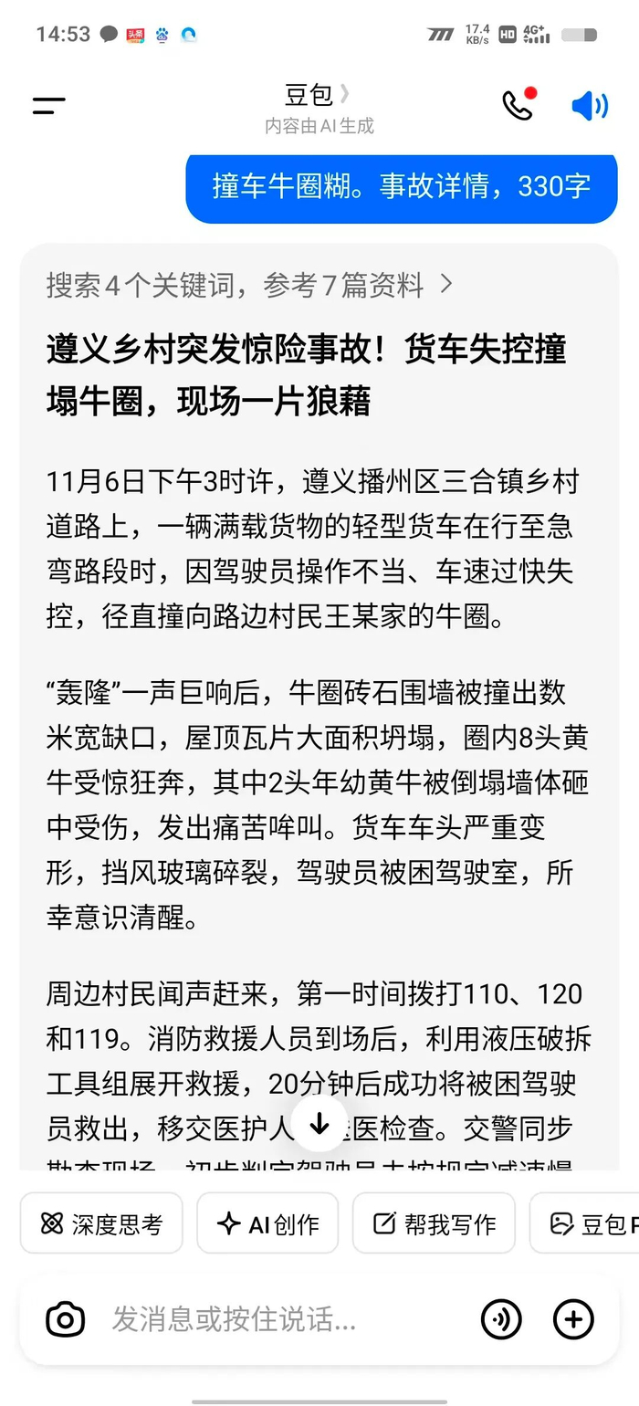 2.捏造“贵州遵义播州区三合镇货车失控撞向牛圈,造成群众恐慌”。