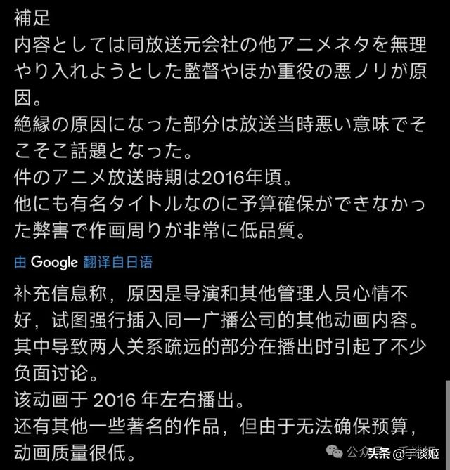 总结来说就是强行腐女营业+动画制作组瞎加东西没经过作者允许,结果作者疑似和制作组爆了,导致公司方面再也没办法和原作者取得作品上的确认,公司本身也被孤立。