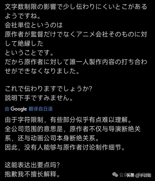 ……说实话,姬觉得原作者和创作者的矛盾自始至终都是非常难以调节的。姬不否认存在全部制作人员——包含原作者和制作组全员都上下一心的良好环境,然而对大部分作者来说,要实现更好更温和的共存模式,也许仍然道阻且长。